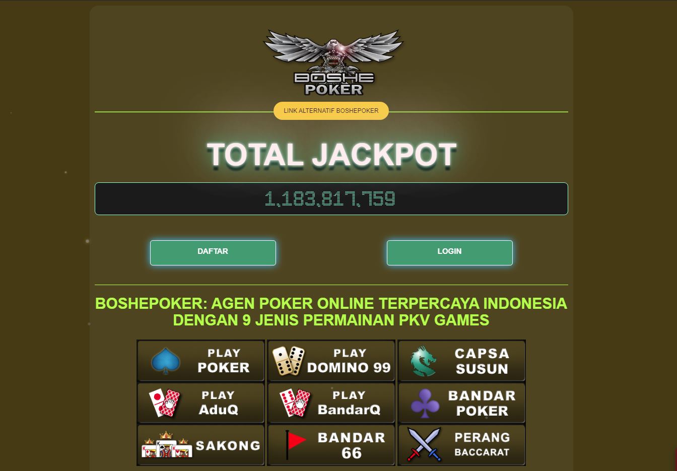 Boshepoker juga adalah situs terunggul yang banyak menyediakan berbagai macam permainan terlengkap dan terpopuler seperti Domino99, BandarQ, AduQ, Poker Online, Bandar Poker, Sakong, Capsa Susun, Bandar66, dan Perang Baccarat.